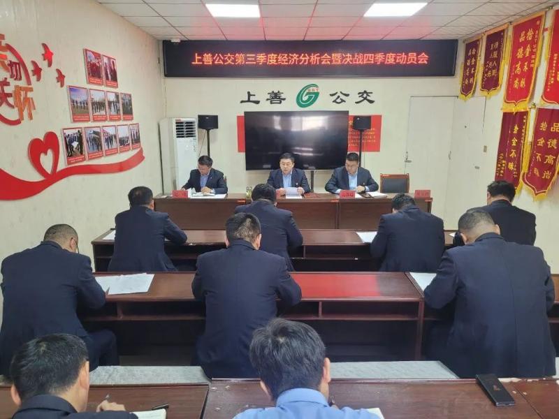 為盤點分析公司三季度經(jīng)濟運行情況,聚焦聚力工作主線,梳理查找差距,沖刺四季度,奪取全年勝利。10月29日,交發(fā)集團上善公交召開第三季度經(jīng)濟分析暨“決戰(zhàn)四季度”動員會。公司班子成員、全體管理人員參加會議。