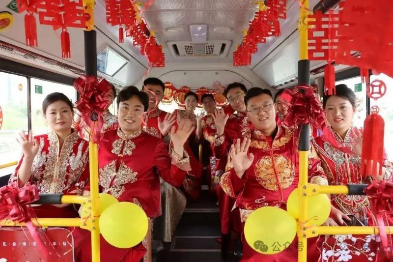 為圓滿完成此次集體婚禮保障任務(wù),公司精心調(diào)配4臺新能源公交車,從設(shè)計、制作到運營各環(huán)節(jié),提供獨具個性的全方位婚車服務(wù),全力營造傳統(tǒng)婚禮的喜慶氛圍。