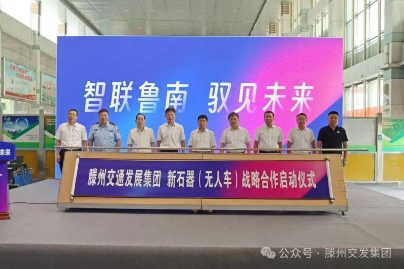 市交通運(yùn)輸局黨組書記、局長孟祥磊參加儀式并致辭。他指出,交發(fā)集團(tuán)無人車項(xiàng)目簽約暨新石器魯南運(yùn)營中心啟動(dòng)運(yùn)營,是交發(fā)集團(tuán)大力發(fā)展現(xiàn)代物流業(yè)、優(yōu)化資源配置、調(diào)整產(chǎn)業(yè)結(jié)構(gòu)的又一次成功實(shí)踐,必將為推動(dòng)全市交通物流業(yè)“數(shù)智化、綠色化”注入新活力、新動(dòng)能。希望交發(fā)集團(tuán)和新石器公司,發(fā)揮各自在資源、技術(shù)、市場、科技創(chuàng)新等方面優(yōu)勢,持續(xù)提升合作能級、釋放合。新石器山東大區(qū)銷售總監(jiān)張浩蒞臨活動(dòng)并詳細(xì)介紹了新石器無人車的技術(shù)優(yōu)勢、應(yīng)用案例等情況,表示將以此次合作為契機(jī),持續(xù)加大研發(fā)投入,深化技術(shù)迭代,完善服務(wù)體系,與交發(fā)集團(tuán)攜手并肩,加速無人配送技術(shù)的場景落地與產(chǎn)業(yè)融合,共同打造魯南智慧物流新標(biāo)桿,為滕州區(qū)域經(jīng)濟(jì)高質(zhì)量發(fā)展貢獻(xiàn)科技力量。作紅利,實(shí)現(xiàn)資源共享、優(yōu)勢互補(bǔ)、互利共贏,推動(dòng)在簽約環(huán)節(jié),集團(tuán)權(quán)屬道服公司總經(jīng)理張宏偉與新石器山東大區(qū)銷售總監(jiān)張浩簽署了戰(zhàn)略合作協(xié)議。隨后,正德康城、極兔快遞、久基醫(yī)療、普仁醫(yī)藥等合作企業(yè)代表與道服公司共同簽約,開啟無人物流車的多元化應(yīng)用。最后,與會(huì)領(lǐng)導(dǎo)共同推動(dòng)啟動(dòng)桿,標(biāo)志著新石器魯南運(yùn)營中心正式投入運(yùn)營。儀式結(jié)束后,出席活動(dòng)的領(lǐng)導(dǎo)和嘉賓現(xiàn)場參觀體驗(yàn)了新石器全系無人車車型。形成無人車產(chǎn)業(yè)發(fā)展新優(yōu)勢,畫出合作共贏最大“同心圓”。