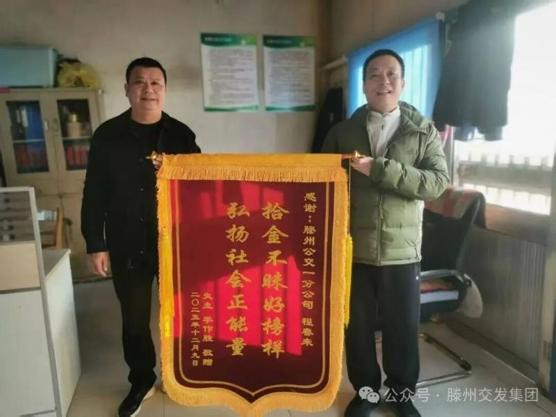 12月11日,市民李先生將一面印有“拾金不昧好榜樣 弘揚(yáng)社會(huì)正能量”的錦旗專程送到交發(fā)集團(tuán)公交公司工作人員手中,對(duì)公交一分公司4路駕駛員程春來師傅拾金不昧的善舉表示誠(chéng)摯的感謝。