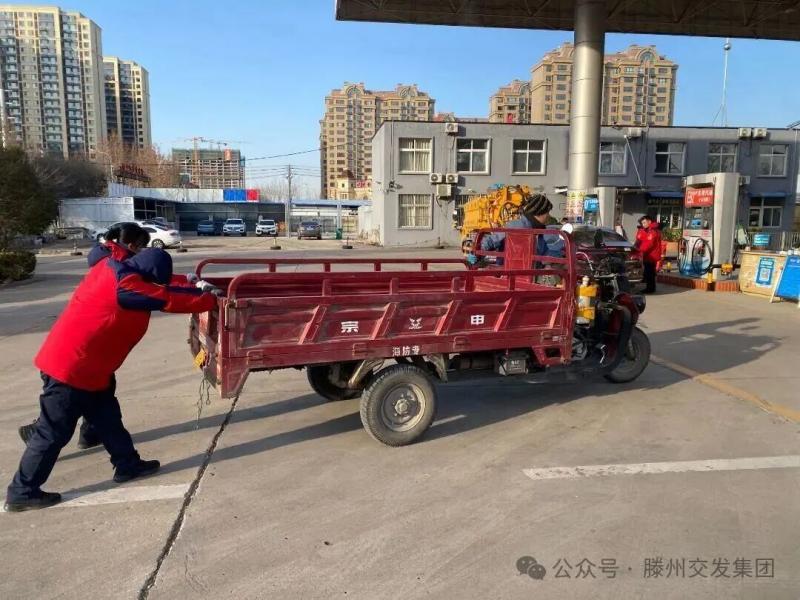 據(jù)了解,當(dāng)日中午,交發(fā)集團能源公司王延清、張蕾蕾兩名當(dāng)班加油員敏銳發(fā)現(xiàn)一輛三輪車停在行車道,意識到情況危險,兩人快步上前,詢問車主后,才得知是車輛燃油耗盡失去了動力。于是二人挽起衣袖、一人在前把控方向,一人在后助推車身,合力將沉重的三輪摩托車緩緩?fù)葡蚋浇募佑蜋C旁并順利完成加油,車輛也很快恢復(fù)正常啟動。面對兩人的熱心幫助,車主緊緊握住她們的手連連道謝。