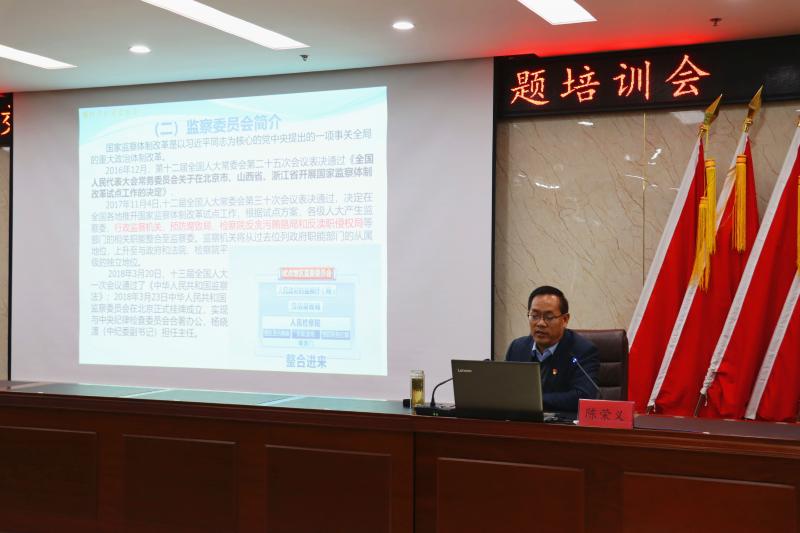 會(huì)上,市紀(jì)委監(jiān)委派駐第四紀(jì)檢監(jiān)察組組長(zhǎng)陳榮義以豐富的工作實(shí)踐經(jīng)驗(yàn)和扎實(shí)的理論功底,以《全面從嚴(yán)治黨 護(hù)航企業(yè)發(fā)展》為題,結(jié)合當(dāng)前反腐環(huán)境形勢(shì),監(jiān)察委員會(huì)職能等課題,以案為鑒、以案說法,并通過播放《永葆政治本色》專題片,深入淺出地就如何抓好黨風(fēng)廉政建設(shè)和反腐敗工作進(jìn)行了深刻剖析闡述,給全體受訓(xùn)人員進(jìn)行了一次十分生動(dòng)的廉政教育課。