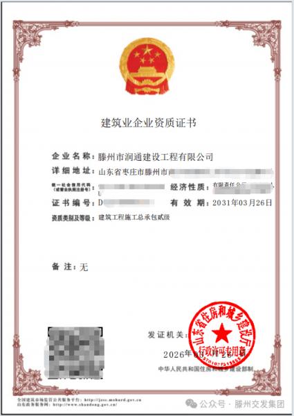 經(jīng)省住房和城鄉(xiāng)建設(shè)廳核查批準(zhǔn),近日,交發(fā)集團(tuán)潤通公司成功取得建筑工程施工總承包貳級資質(zhì)。