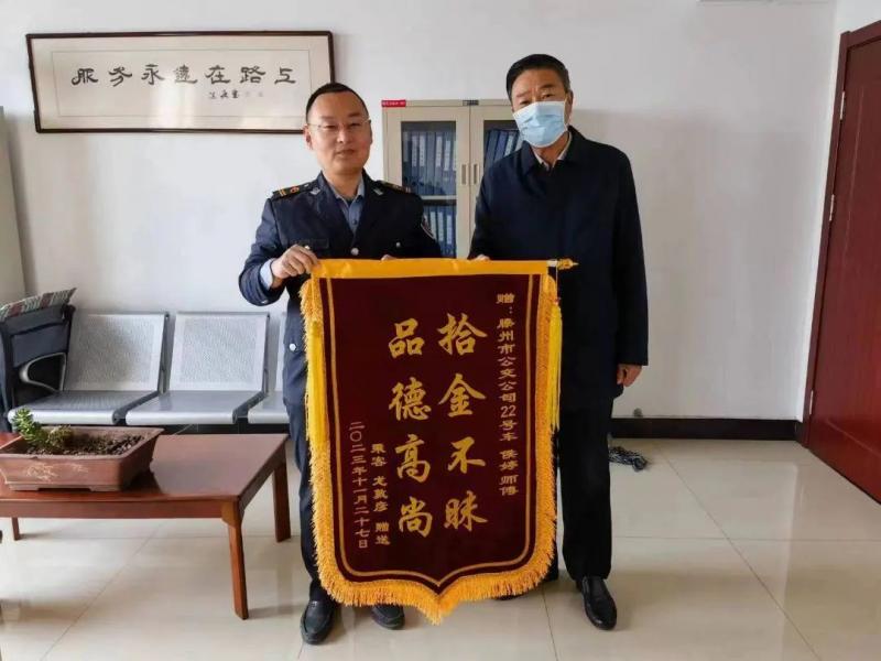 12月6日上午,市民龍先生專(zhuān)程來(lái)到交發(fā)集團(tuán)公交公司,將一面印有“拾金不昧 品德高尚”的錦旗交到公司工作人員手中,對(duì)22路駕駛員侯婷師傅表示感謝。