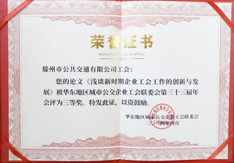 近日,華東地區(qū)城市公交企業(yè)工會(huì)聯(lián)委會(huì)面向華東地區(qū)六省一市各公交客運(yùn)單位開展優(yōu)秀論文征集,交發(fā)集團(tuán)公交公司工會(huì)積極響應(yīng),撰寫的《淺談新時(shí)期企業(yè)工會(huì)工作的創(chuàng)新與發(fā)展》論文在華東地區(qū)公交企業(yè)工會(huì)聯(lián)委會(huì)第三十三屆年會(huì)上榮獲三等獎(jiǎng)。