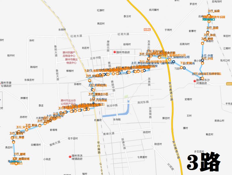為進一步增強公交線網的覆蓋率,暢通我市東西部交通出行,1989年12月14日,3路公交線路開通運營五里屯—東沙河鎮(zhèn)政府。隨著我市經濟社會的快速發(fā)展,群眾的交通需求不斷變化,3路線路經歷了多次調整。1994年,運營線路調整為火車站—東沙河鎮(zhèn)政府。1998年又恢復了3路五里屯—東沙河鎮(zhèn)政府。1999年調整為火車站—東沙河鎮(zhèn)政府延伸至十六中。1999年10月3路延伸至前梁村。2004年8月4日,3路經韓樓村分支運營至耿樓村。2006年8月9日,3路線分支運營的耿樓村延伸至滕州與山亭交界的宋莊村,形成了3路線末端分支運營格局。2006年9月27日,3路調整為火車站—平行路—龍山路—龍泉北路—北留路—東沙河—前梁分支運營。2015年12月29日,為方便滕國故城附近群眾出行,經上級領導部門批準,優(yōu)化調整3路走向,填補滕國故城等路段公交空白,延伸至滕國故城,由前梁發(fā)車途經北辛路、龍泉路、學院路、平行路、荊河路發(fā)往滕國故城方向,全程23km,票價2元。2017年1月1日起,3路公交車由有人售票改為無人售票,票價2元。